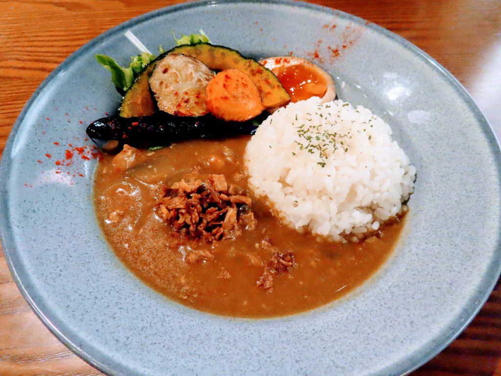 ベースに身体を温める食品でもある味噌を使用したチキンカレー。スパイス煮卵ものっています!